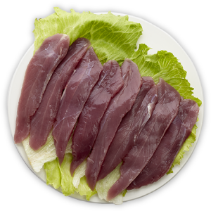 附著鴨胸骨兩側胸內肌肉,取得方式在胸骨兩側各劃一刀,並沿兩邊鎖骨切開即可取得